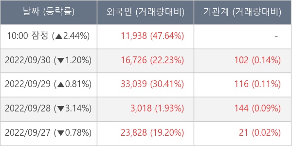 [표] 외국인ㆍ기관 순매매량 (단위 주)