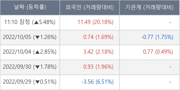 [표] 외국인ㆍ기관 순매매량 (단위 만주)