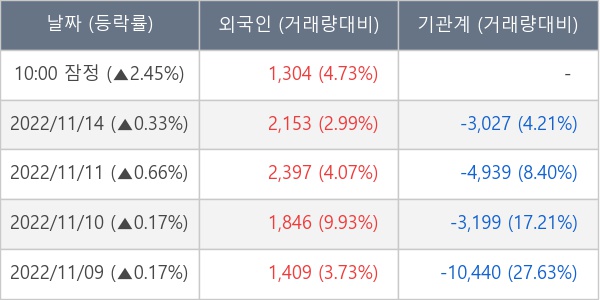 [표] 외국인ㆍ기관 순매매량 (단위 주)