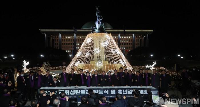 [서울=뉴스핌] 이형석 기자 = 7일 밤 서울 여의도 국회 분수대광장에서 성탄트리 점등식이 열리고 있다. 2022.12.07 leehs@newspim.com