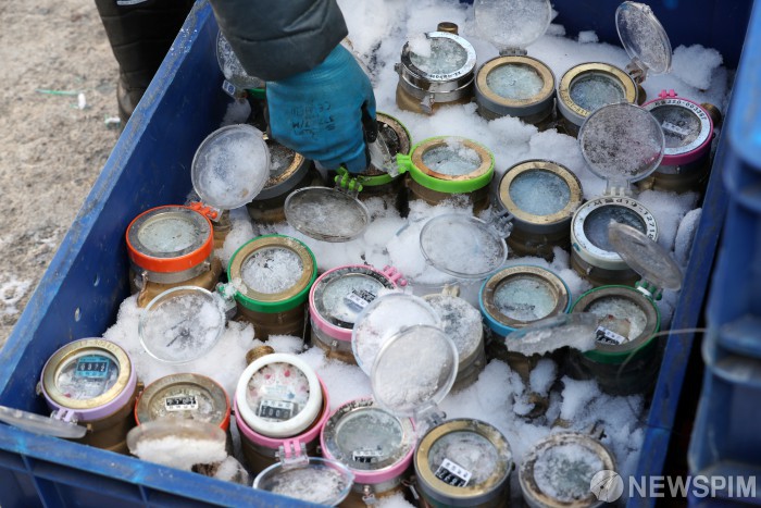 [서울=뉴스핌] 정일구 기자 = 수도권을 중심으로 한 대설과 한파로 계량기 동파 피해가 잇따르고 있는 가운데 22일 오후 서울 종로구 중부수도사업소 효자가압장에 동파된 수도계량기가 쌓여 있다. 2022.12.22 mironj19@newspim.com