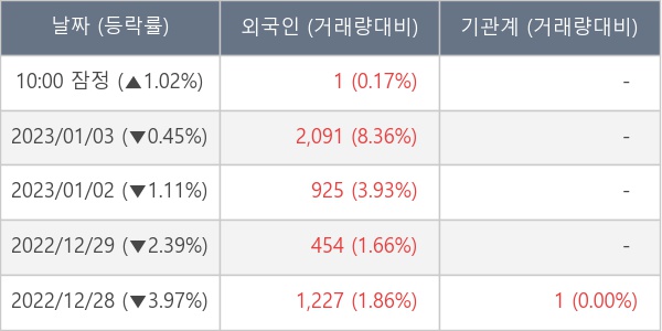 [표] 외국인ㆍ기관 순매매량 (단위 주)