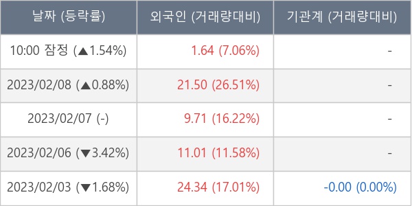 [표] 외국인ㆍ기관 순매매량 (단위 만주)