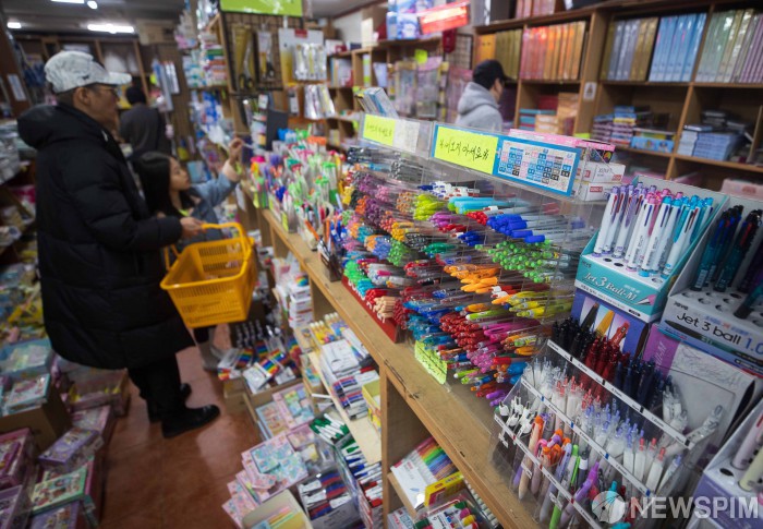 [서울=뉴스핌] 윤창빈 기자 = 새학기를 앞둔 13일 오후 서울 종로구 창신동 문구거리의 한 상점에서 학부모와 아이들이 문구를 살펴보고 있다. 2023.02.13 pangbin@newspim.com