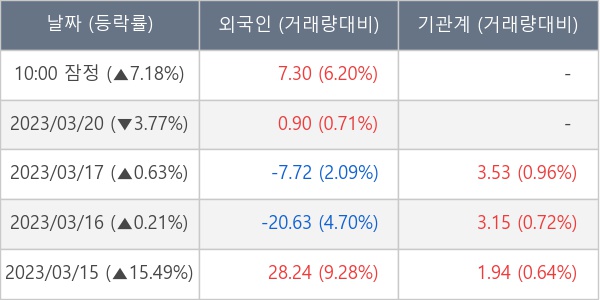 [표] 외국인ㆍ기관 순매매량 (단위 만주)