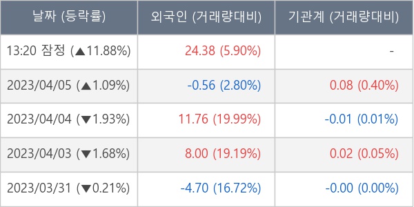 [표] 외국인ㆍ기관 순매매량 (단위 만주)