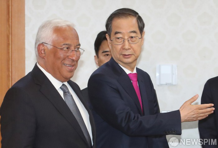 [서울=뉴스핌] 김학선 기자 = 한덕수 국무총리와 안토니우 코스타 포르투갈 총리가 12일 오전 서울 종로구 정부서울청사에서 열린 한-포르투갈 총리 회담에 참석하고 있다. 2023.04.12 yooksa@newspim.com