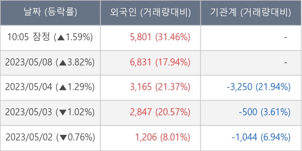 [표] 외국인ㆍ기관 순매매량 (단위 주)