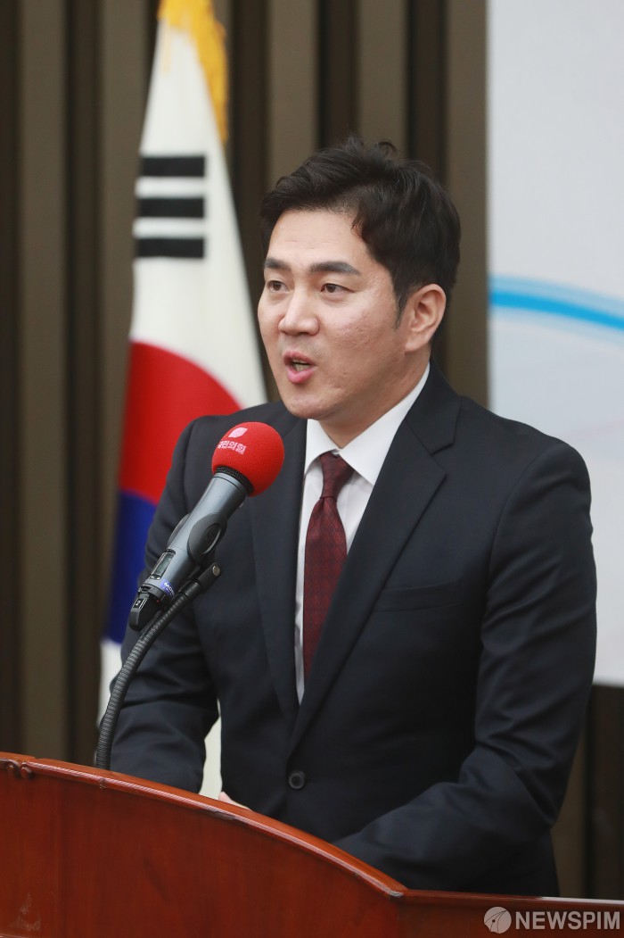 [서울=뉴스핌] 이형석 기자 = 국민의힘 최고위원에 당선된 김가람 청년대변인이 9일 오후 서울 여의도 국회에서 열린 최고위원 당선자 결과 발표에서 수락연설을 하고 있다. 2023.06.09 leehs@newspim.com