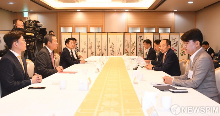 [서울=뉴스핌]추경호 부총리 겸 기획재정부 장관이 14일 오후 서울 종로구 정부서울청사에서 열린 '벤처기업인들과의 간담회'에서 모두발언을 하고 있다.[사진=기획재정부] 2023.06.14 photo@newspim.com
