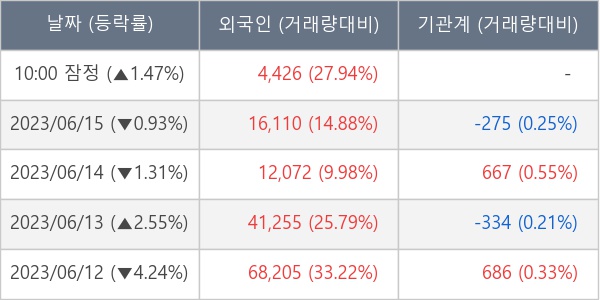[표] 외국인ㆍ기관 순매매량 (단위 주)