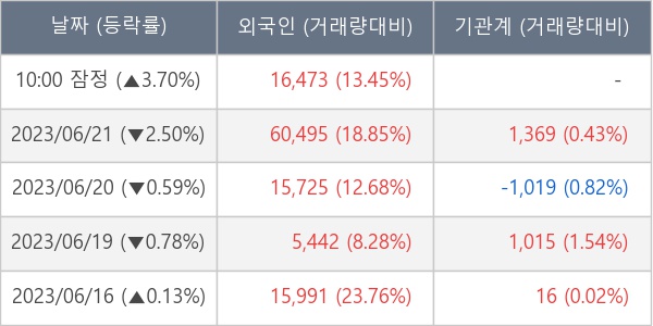 [표] 외국인ㆍ기관 순매매량 (단위 주)
