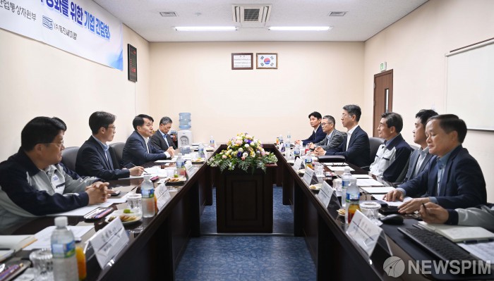 [서울=뉴스핌]장영진 산업통상자원부 1차관이 7일 경기도 화성시 동진케미켐 발안공장에서 열린 반도체 소부장 기업 간담회를 주재,인사말을 하고 있다. 이날 간담회에는 이준혁 동진쎄미켐 대표, 이종림 에스앤에스텍 사장, 장경빈 에프에스티 대표, 김병국 이솔 대표, 김호식 엘오티베큠 부회장, 김정회 반도체산업협회 부회장 등 반도체 소재·부품·장비 관련 기업 대표 및 관계자가 참석했다.[사진=산업통상자원부] 2023.07.07 photo@newspim.com