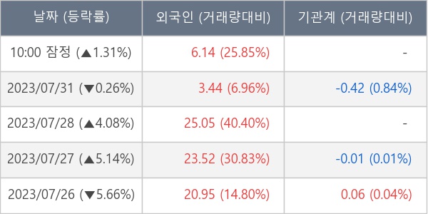 [표] 외국인ㆍ기관 순매매량 (단위 만주)