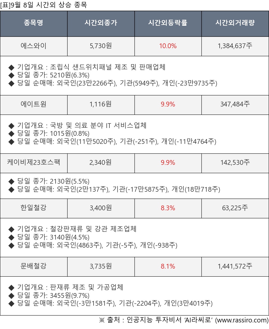 ※ 관련 종목: 에스와이, 에이트원, 케이비제23호스팩, 한일철강, 문배철강