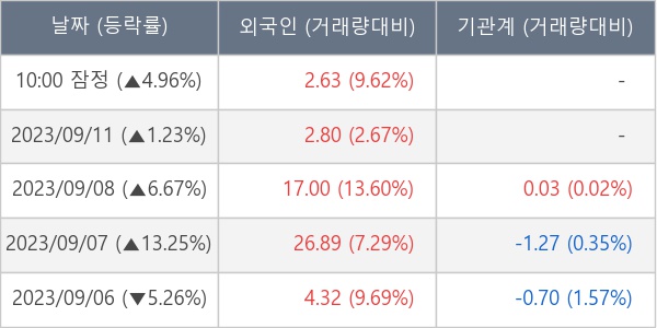 [표] 외국인ㆍ기관 순매매량 (단위 만주)