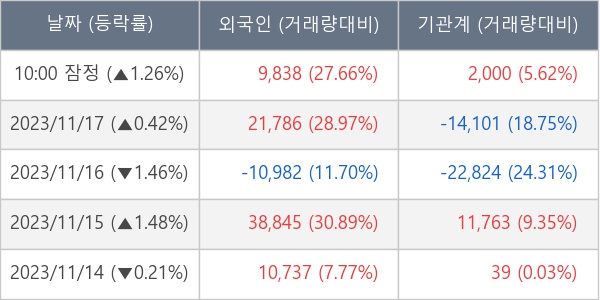 ※ 사모펀드 등 일부 기관의 순매매량은 표시되지 않음