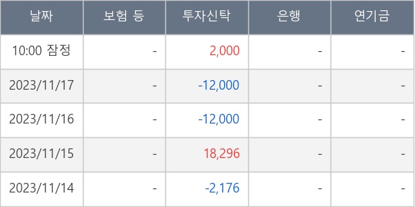 [표] 주요 기관별 순매매량 (단위 주)