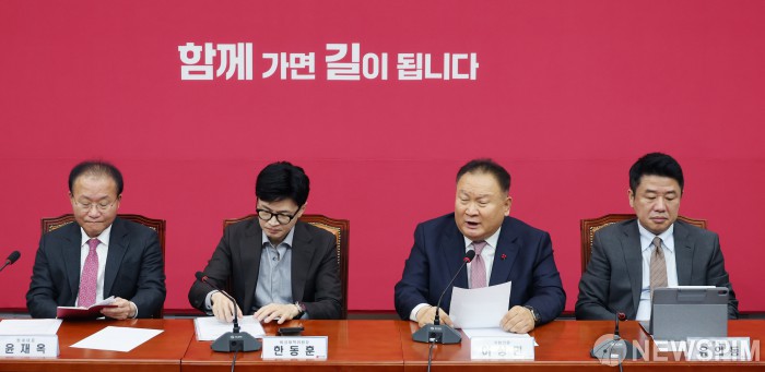 [서울=뉴스핌] 이형석 기자 = 국민의힘으로 당적을 옮긴 이상민 의원이 8일 오전 서울 여의도 국회에서 열린 비상대책위원회의에서 인사말을 하고 있다. 2024.01.08 leehs@newspim.com