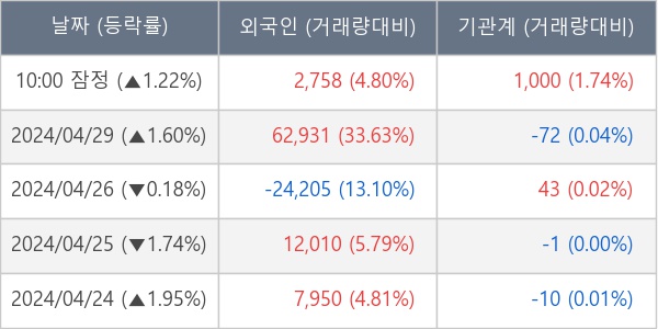 ※ 사모펀드 등 일부 기관의 순매매량은 표시되지 않음
