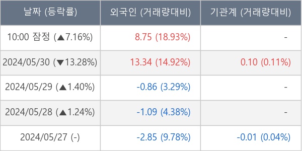 [장중수급포착] 트루윈, 외국인 87,523주 대량 순매수... 주가 +7.16%