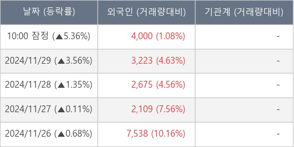 [표] 외국인ㆍ기관 순매매량 (단위 주)