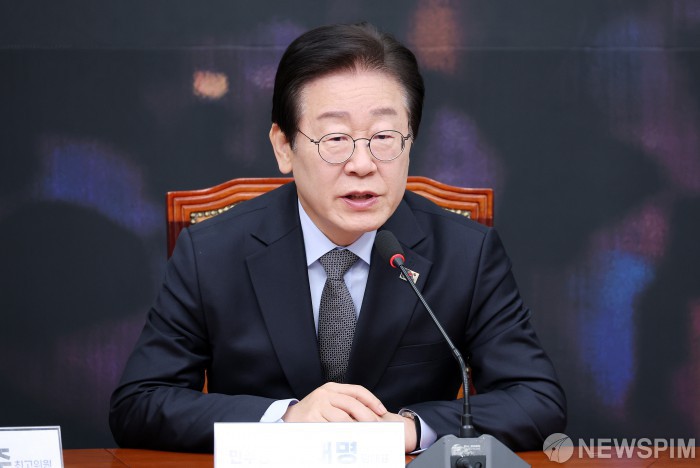 [서울=뉴스핌] 정일구 기자 = 이재명 더불어민주당 대표가 8일 오전 서울 여의도 국회에서 열린 외환시장 점검 간담회에서 발언하고 있다. 2025.01.08 mironj19@newspim.com