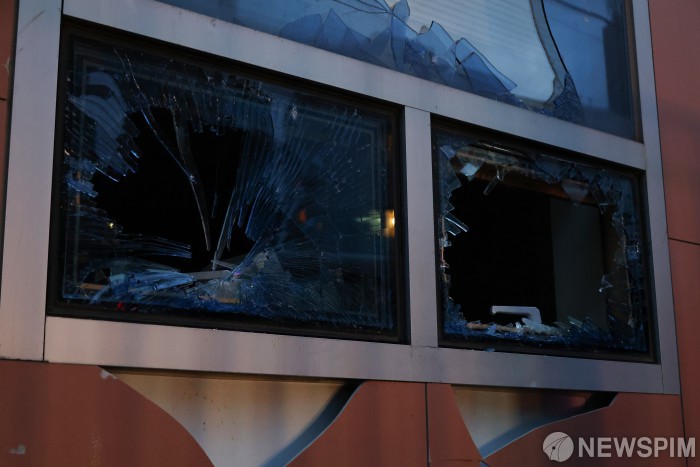 윤 대통령 지지 시위대에 파손된 서부지법 유리창