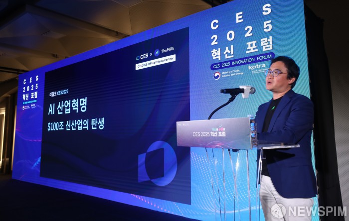 [서울=뉴스핌] 최지환 기자 = 손재권 더밀크 대표가 23일 오후 서울 강남구 코엑스에서 열린 CES 2025 혁신포럼 세미나에서 발표를 하고 있다. 2025.01.23 choipix16@newspim.com