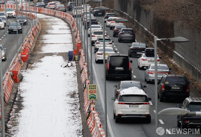 [서울=뉴스핌] 윤창빈 기자 = 전국에 많은 눈이 내린 28일 서울 서부간선도로의 차량들이 서행하고 있다. 2025.01.28 pangbin@newspim.com