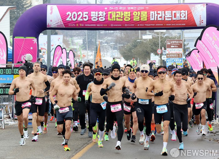 [서울=뉴스핌] 2월의 첫 휴일인 1일 오전 차가운 날씨에도 평창 대관령면 송천 대관령 눈꽃축제장에서 열린 ‘WINTER RUN IN 평창 대관령 알몸 마라톤 대회’ 참가자들이 힘차게 출발하고 있다. 이번 대회는 전국 각지에서 모인 700여 명이 참가자들이 아름다운 설경을 배경으로 5㎞와 10㎞ 등 2개 코스를 달렸다. [사진=평창군청] 2025.02.01 yym58@newspim.com