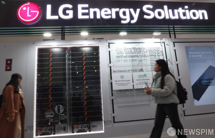 [서울=뉴스핌] 이호형 기자 = 코리아스마트그리드엑스포 2025가 12일 서울 강남구 코엑스에서 열린 가운데 관람객들이 LG 에너지 솔루션 전시관을 살펴보고 있다. 이번 전시회는 '에너지스토리지 산업전', '분산에너지 산업전' 및 'EV 충전 인프라 산업전'으로 구분하여 14일까지 최신 트렌드를 선보인다. 2025.02.12 leemario@newspim.com
