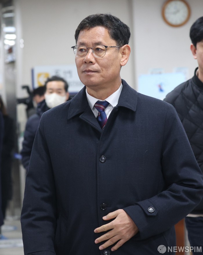 [서울=뉴스핌] 이호형 기자 = ‘탈북어민 강제 북송’ 혐의를 받는 김연철 전 통일부장관이 19일 오후 서초구 서울중앙지방법원에서 열린 국가정보원법 위반 관련 1심 선고기일에 출석하고 있다. 2025.02.19 leemario@newspim.com