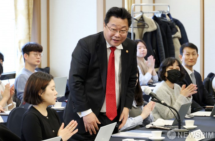 [서울=뉴스핌] 정일구 기자 = 주형환 저출산고령사회위원회 부위원장이 26일 서울 중구 한국프레스센터에서 열린 2025년 저출산고령사회위원회 기자간담회에서 인사를 하고 있다. 2025.02.26 mironj19@newspim.com