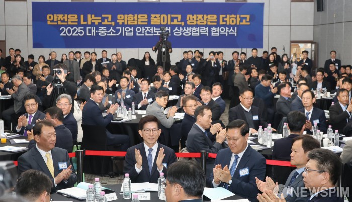 [서울=뉴스핌] 양윤모 기자 = 26일 오후 서울 중구 은행회관 국제회의실에서 김문수 고용노동부장관이 참석한 가운데 열린 '2025 대·중소기업 안전보건 상생협력 협약식'참석자들이 국민의례를 하고 있다. 이번 행사는 고용노동부와 안전보건공단이 주최하고 기아(주)AutoLand 광주,삼성바이오로직스(주),엘지전자,(주)셀트리온등 100개소의 사업장이 참여했다. 2025.02.26 yym58@newspim.com