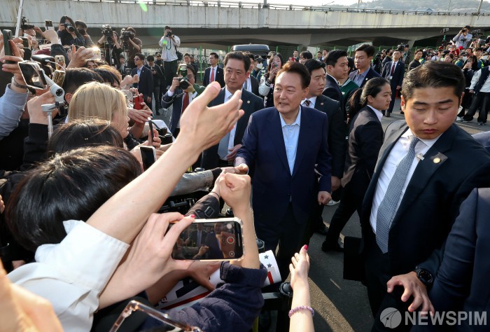 [서울=뉴스핌] 김학선 기자 = 윤석열 전 대통령이 11일 오후 서울 용산구 한남동 관저 정문에서 퇴거하며 지지자들에게 인사하고 있다. 2025.04.11 yooksa@newspim.com