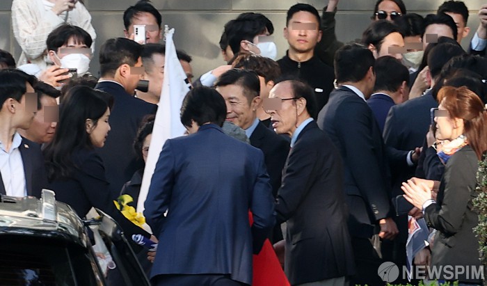 [서울=뉴스핌] 정일구 기자 = 윤석열 전 대통령과 부인 김건희 여사가 11일 오후 서울 서초구 아크로비스타 사저에 도착해 주민들의 환영을 받고 있다. 2025.04.11 mironj19@newspim.com