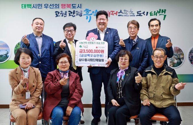 [태백=뉴스핌] 이형섭 기자 = 강원 태백시 삼수동 사회단체 일동이 지난 21일 영남지역 산불 피해복구를 위한 성금 350만 원을 기부했다.