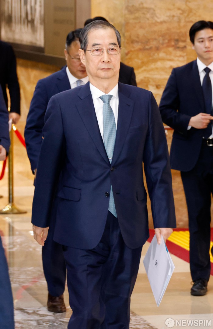 [서울=뉴스핌] 윤창빈 기자 = 한덕수 대통령 권한대행 국무총리가 추가경정예산안 시정연설을 위해 24일 오전 서울 여의도 국회로 들어오고 있다. 2025.04.24 pangbin@newspim.com