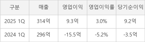◆ 1Q, 매출 314억 전년동기 대비 6.2% 증가... 영업이익률 상승전환