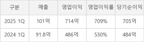 영업이익률을 자세히 살펴보면, 매출은 101억으로 전년동기 대비해서 9.7% 증가한 반면, 영업이익은 714억으로 47% 증가하였다. 매출은 크게 변하지 않았지만 영업이익이 두드러지게 증가하면서 영업이익률도 큰 폭으로 상승한 것을 알 수 있다.