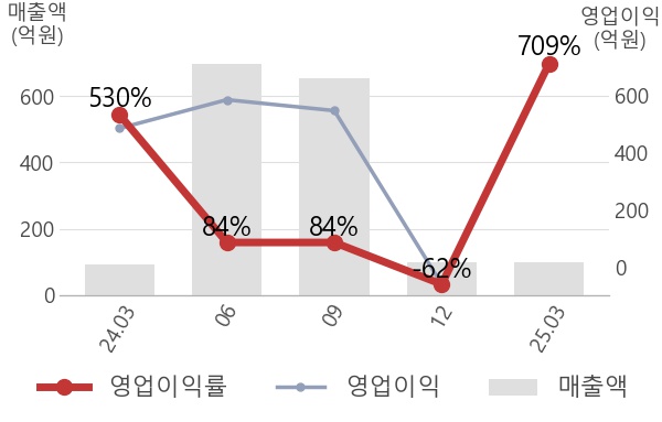 [서울=뉴스핌] 로보뉴스 = LX홀딩스의 영업이익률이 전년동기 대비하여 179%p 급증하였다. 24년 03월 530%이던 영업이익률이 이번 분기에 709%로 급상승하면서 두드러진 변화를 보였다.