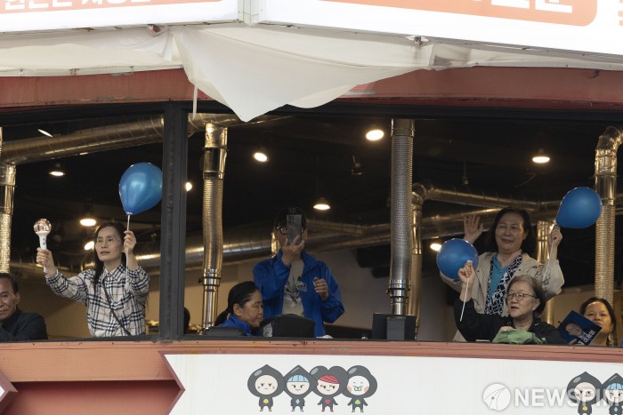[서울=뉴스핌] 윤창빈 기자 = 19일 오후 서울 마포구 홍대 KT&G 상상마당 앞에서 열린 이재명 더불어민주당 대선후보의 유세에서 지지자들이 2층 고기집에서 이 후보의 발언을 들으며 '이재명'을 연호하고 있다. 2025.05.19 pangbin@newspim.com