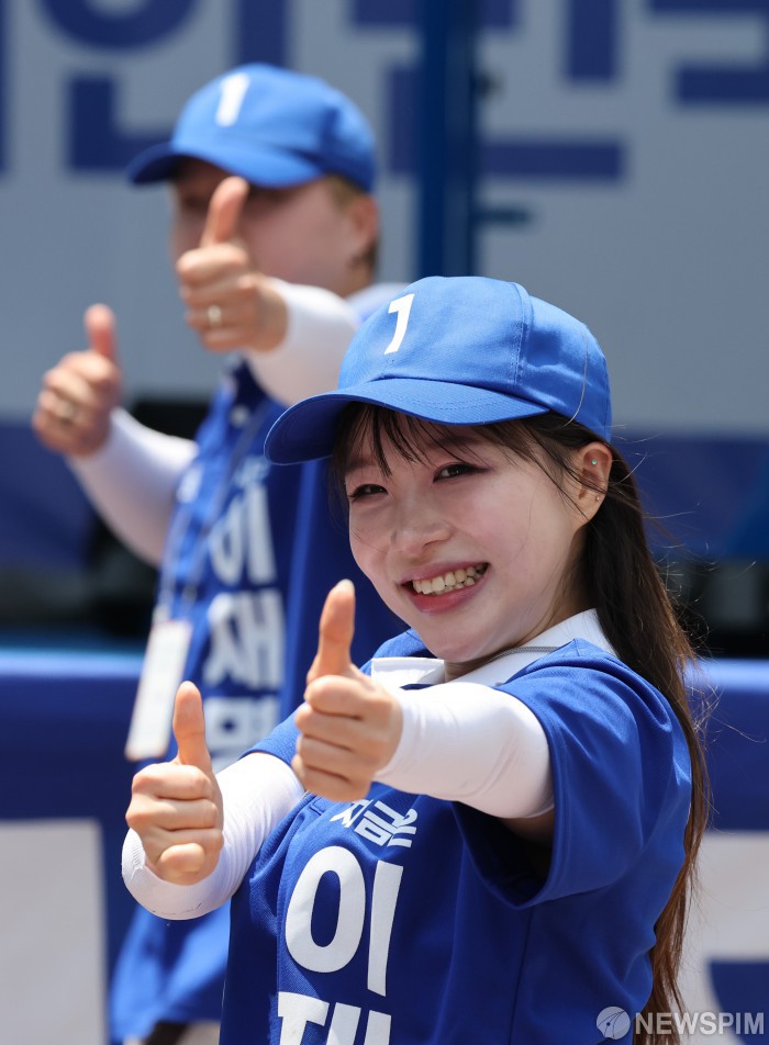 [수원=뉴스핌] 정일구 기자 = 이재명 더불어민주당 대선 후보 유세단이 26일 경기 수원 팔달문 영동시장 입구에서 열린 유세에서 손가락으로 '기호1번'을 그리고 있다. 2025.05.26 mironj19@newspim.com