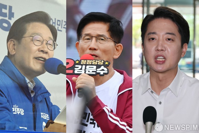 [서울=뉴스핌] 대선취재팀 = 이재명 더불어민주당·김문수 국민의힘·이준석 개혁신당 대선후보가 2일 각자의 유세현장을 찾아 지지를 호소하고 있다. 2025.06.02 photo@newspim.com