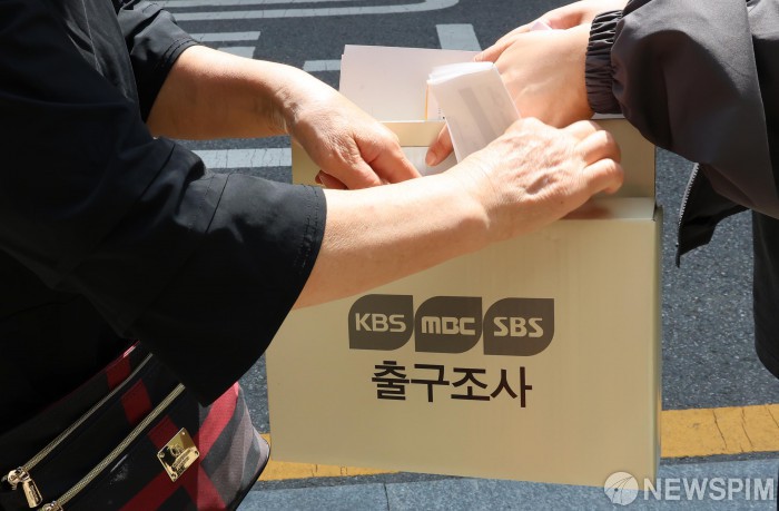 [서울=뉴스핌] 양윤모 기자 = 제21대 대통령 선거일인 3일 오후 서울시내 한 투표소 앞에서 방송3사 공동 출구조사가 진행되고 있다. 2025.06.03 yym58@newspim.com