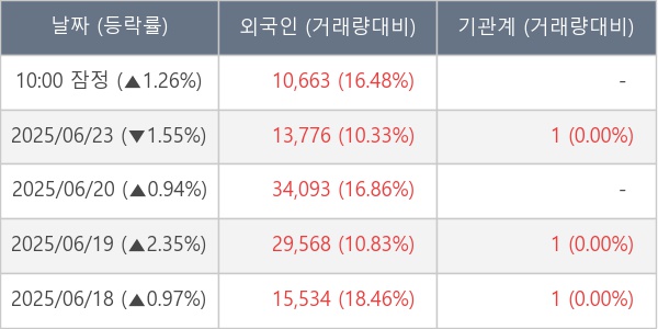 [표] 외국인ㆍ기관 순매매량 (단위 주)