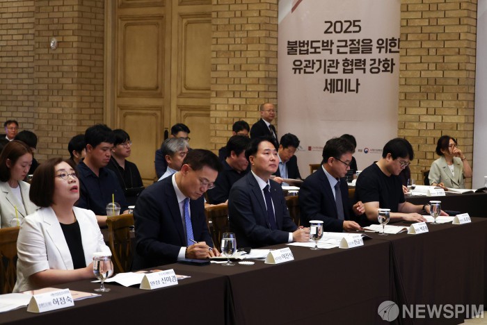 [서울=뉴스핌] 최지환 기자 = 한금석 강원랜드 카지노본부장 직무대행이 27일 오후 서울 강남 라움아트센터에서 열린 2025 불법도박 근절을 위한 유관기관 협력 강화 세미나에 참석해 있다. 왼쪽부터 신미경 한국도박문제예방치유원 원장, 이진식 사행산업통합감독위원회 사무처장, 한금석 강원랜드 카지노본부장 직무대행, 박준휘 한국범죄학회 회장. 2025.06.27 choipix16@newspim.com