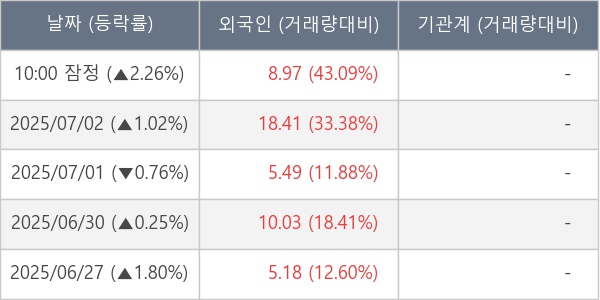 [표] 외국인ㆍ기관 순매매량 (단위 만주)