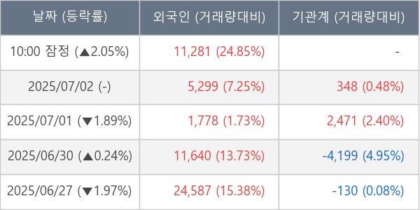 [표] 외국인ㆍ기관 순매매량 (단위 주)